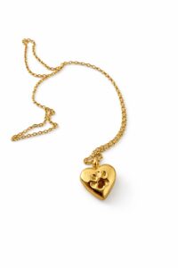 Collana in acciaio inssidabile con ciondolo a forma di cuore decorato da impronta. Finitura lucida, resistente.