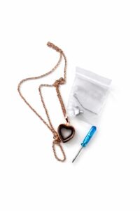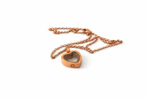 Collana cineraria color oro con il centro trasparente.