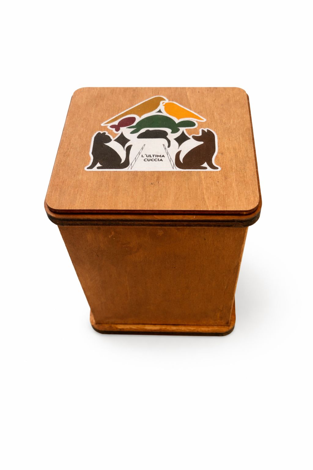 Urna cineraria in legno naturale, dal design semplice ed elegante, ideale per custodire con rispetto le ceneri del tuo animale domestico.