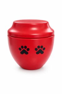 Urna cineraria elegante dal design moderno, con finitura lucida e forma armoniosa. Ideale per custodire con discrezione le ceneri del proprio caro.